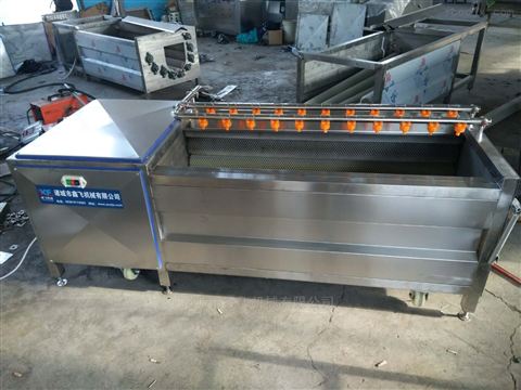 全自動白蘿卜清洗機廠家 設備主要構成有箱體,網帶,噴淋管道及噴頭,循環水泵,強流風機等幾部分組成。設備整機采用不銹鋼制作而成,箱體底部斜面設計,可快速排出箱體內臟水及雜質。設備軸承采用不銹鋼軸承,在水中實用性強,不生銹,保證設備運行平穩。清洗池邊框一次性折彎而成,增加設備的耐用性跟穩定牢固性。箱體內的鼓泡裝置,在產品進入箱體內,對產品進行翻轉,上下晃動沖擊,清除產品雜質,沖浪式的波流在推進產品前進的同時,與高壓噴淋水形成對沖,讓產品翻轉上浮的同時再次下沉,對產品表面進行有效的沖洗,保證產品的清潔度。 全自動白蘿卜清洗機廠家 清洗加工設備改進版的循環過濾水箱,除配備三層過濾網外,底部跟箱體成斜面匯集狀,階梯式的設計,讓雜質在匯集的同時,沉淀在底部,尤其是泥沙等雜質,回收到一定程度可進行人工開閥排出。清洗機的水可循環利用,并且在出料時,對產品進行二次沖洗,這個過程不僅清洗了產品,還對水槽中的水進行及時的補充,設備配備溢水口,在補充的同時也排出了部分水,保證清洗槽里水的清潔度。